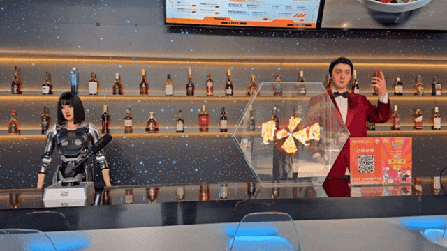 星巴克惊现“虎头女”,又麻利又专业,能玩一下战书!人机比拼。孙佳蕊/摄